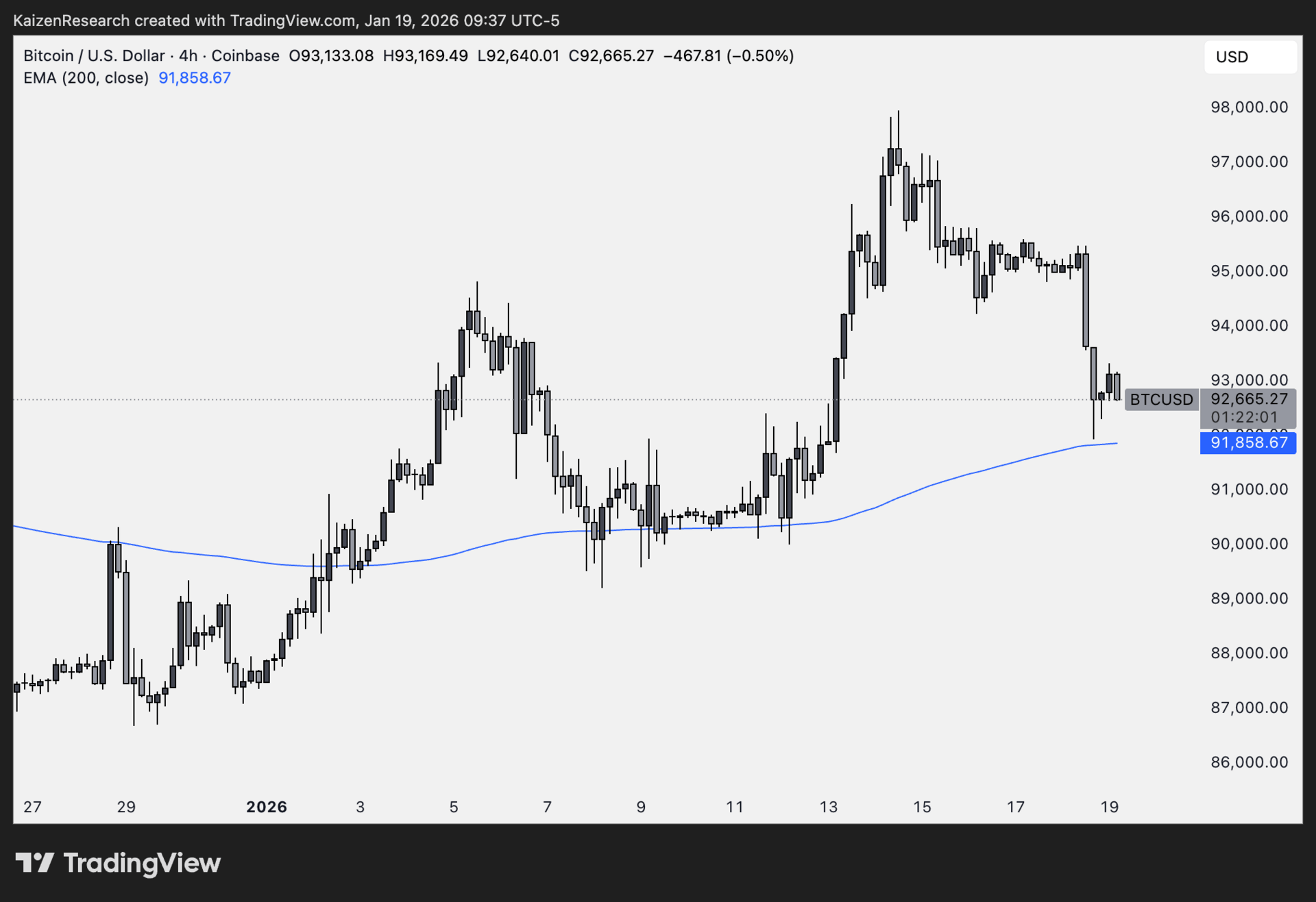 The bias stays constructive as long as BTC holds above the EMA200. A reclaim of $94k would confirm the relief move and open room toward $95k.