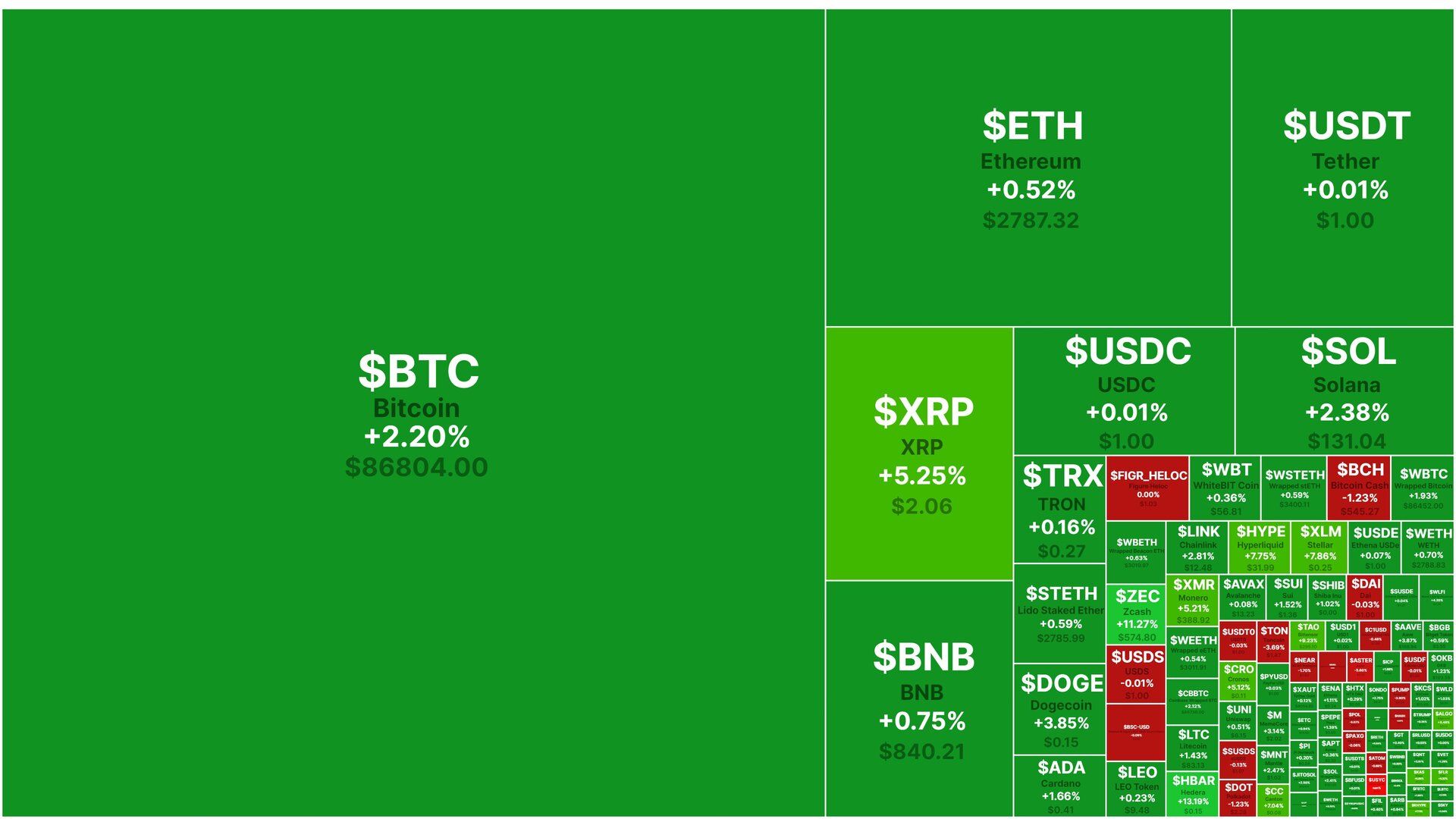 Through Saturday and Sunday, BTC pushed back above 87K, ETH steadied, and even beaten-down alts bounced.