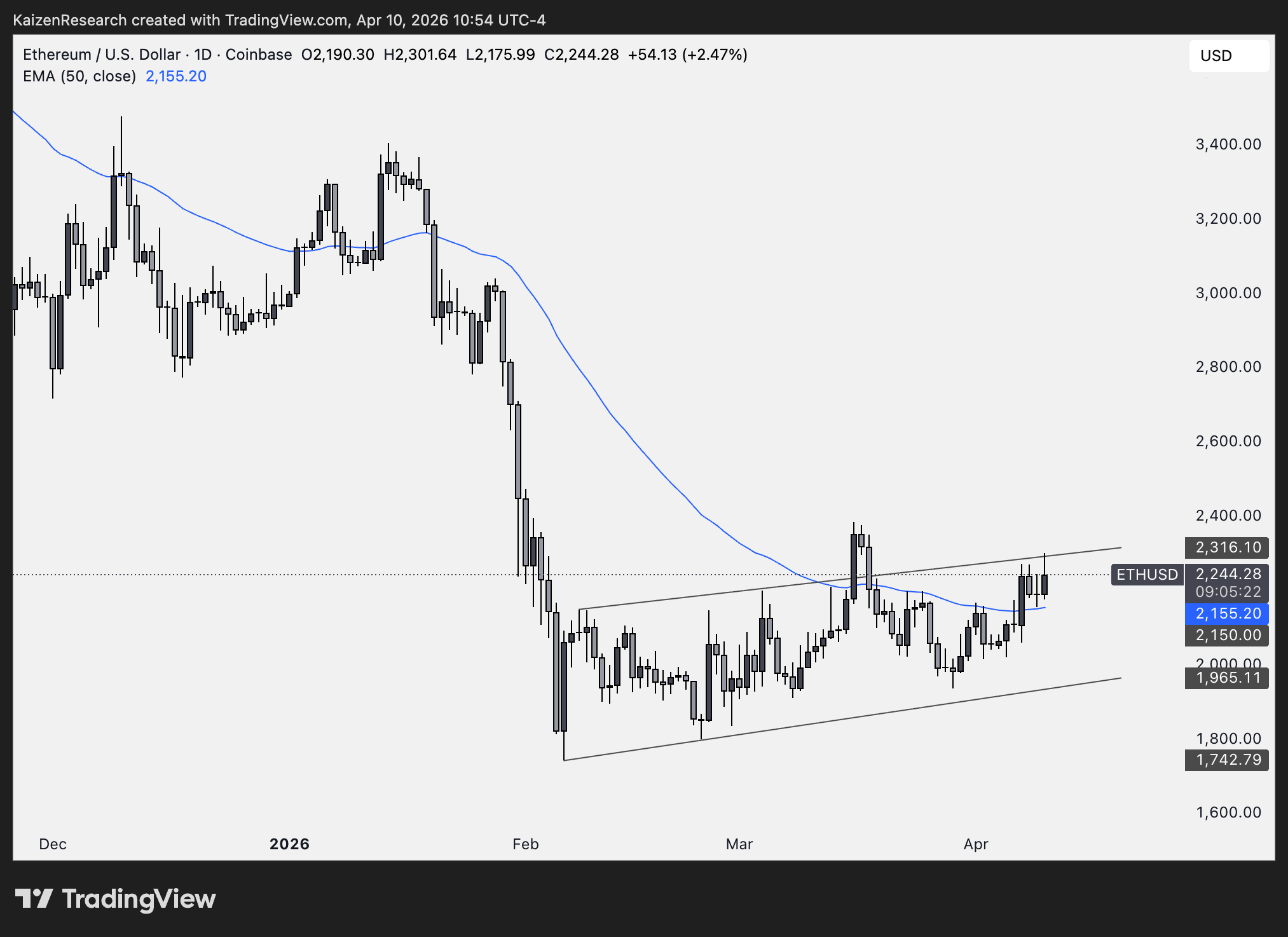 ETH got rejected at the top of its rising channel and is now pulling back into a key decision zone around the 50-day EMA.