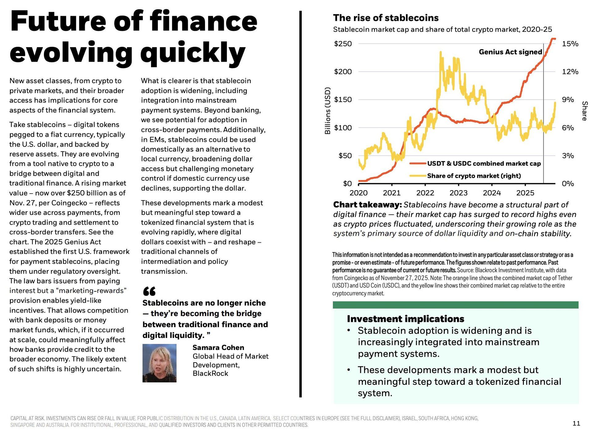 Stablecoins are now named as part of this financial evolution and not a fringe experiment. BlackRock expects households and businesses to increasingly move value across digital rails for payments, yield and liquidity.